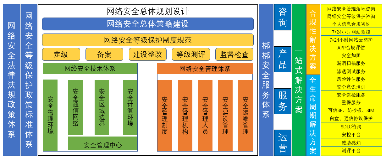 等级保护2.0更加突出技术思维和立体防范,注重全方位主动防御、动态防御、整体防控和精准防护,进一步强化“一个中心、三层防护”的安全保护体系。