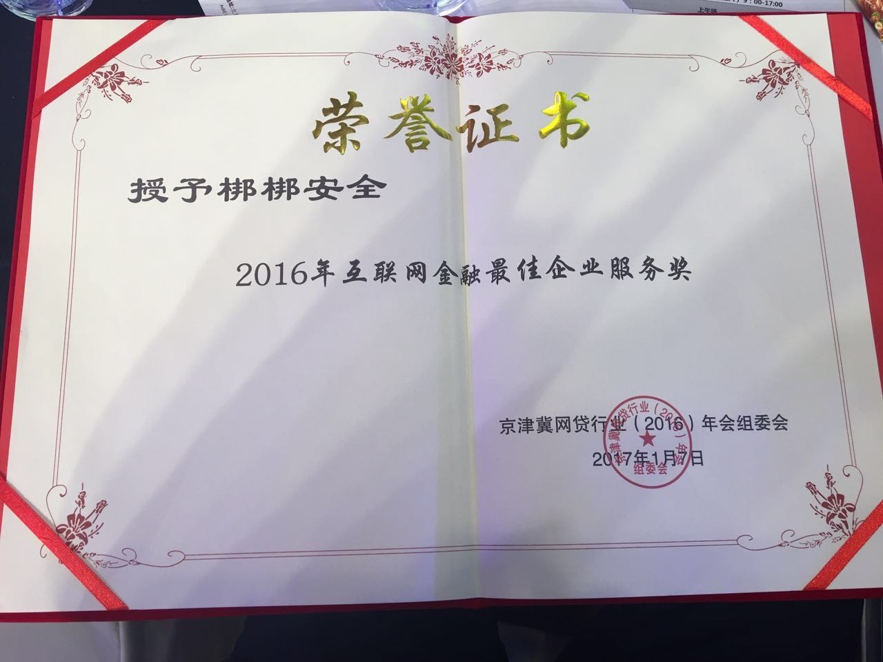 当日,年会上还举办了“2016网贷行业公益案例奖”颁奖仪式,评选出10家“最佳企业服务奖”。梆梆安全、玖富互金控股集团、恒昌公司、融宝支付、冠群驰骋、今日金融、普惠家等一同获得该奖项。